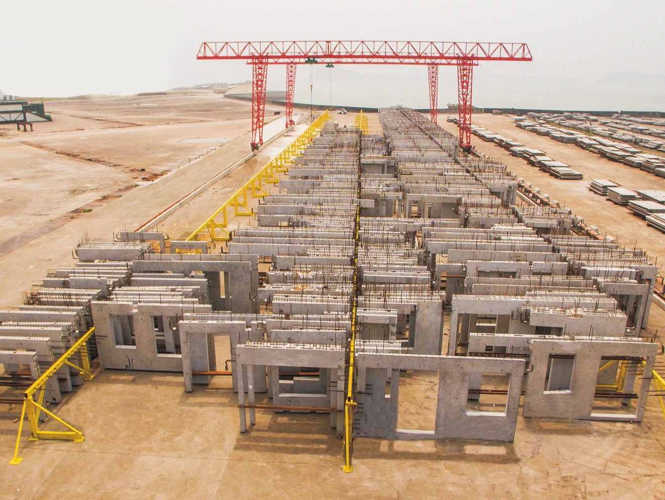 公司位于溫嶺東海之濱,松門鎮(zhèn)龍擔(dān)嶼裝配式建筑工業(yè)化科技產(chǎn)業(yè)園區(qū)內(nèi)。園區(qū)總占地面積700余畝,其中裝配式PC構(gòu)件生產(chǎn)占地200余畝,擁有30000㎡工業(yè)廠房和150畝構(gòu)件堆場,以及25000㎡的辦公、住宿、食堂、娛樂場所,投入國內(nèi)先進(jìn)的自動(dòng)化環(huán)形流水生產(chǎn)線1條,固定模臺(tái)生產(chǎn)線4條,規(guī)劃年產(chǎn)預(yù)制構(gòu)件約10萬立方砼,可生產(chǎn)疊合樓板、樓梯、內(nèi)外墻板、梁柱、陽臺(tái)、空調(diào)板等不同類型的構(gòu)件。